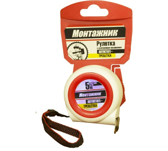 Рулетка 5м *25мм Монтажник с автостопом-трещоткой (604525)